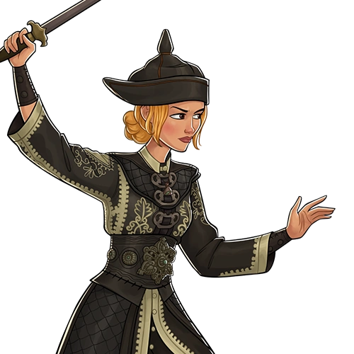 - Active: Elizabeth Swann points her sword at the Most Wanted enemy, unleashing a flurry of 4 stabs each dealing some Normal Damage while reducing their Armor and Reality for a few seconds. If the target gets below a percent of HP from the resulting damage they have a Damage over Time applied to them that deals True Damage every second for a few seconds. Elizabeth Swann can only Distract one target at a time with her Basic Attacks.