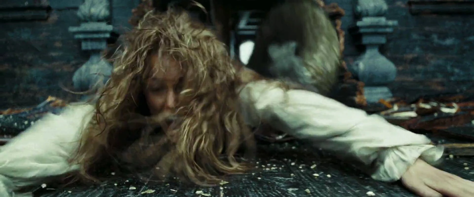 - In the first three POTC films, Elizabeth sometimes lost consciousness: She passed out twice in The Curse of the Black Pearl when her overly tight corset prevented her from breathing and fell into the water afterward. In the end, she pretended to faint to create a diversion while Will saved Jack from hanging. In Dead Man's Chest, she again pretended to pass out so that Jack, Will, and Norrighton would stop fighting but they didn't even notice. In At World's End, Davy Jones knocked her out.