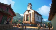 - Plaza: The town plaza is a wide area where all central buildings are, such as the bell tower, church, and all the shops are located.