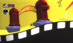 - Petetronic, especially his appearance and boss battle, is a reference to Tron. The battle arena itself resembles the building that houses Space Mountain, though it has texture design of the environments featured in Tron.