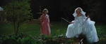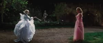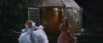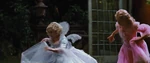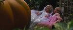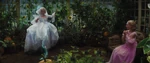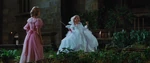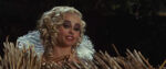 The Fairy Godmother is first seen as an aforementioned beggar woman, following the Tremaine family's departure to the Royal ball. As Cinderella falls into despair, the beggar woman arrives and asks for nourishment, to which Cinderella obliges. Afterward, she reveals herself to be the girl's Fairy Godmother and, like the original film, grants her access to the ball. Before she departs, the Fairy Godmother casts a further spell to ensure that her step-family will not recognize her, warns Cinderella of the time limit, and sees her off after bestowing a pair of magical glass slippers, that will ultimately lead to the girl's happy ending.