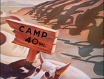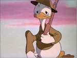 At night, Donald is kept awake by the snoring of various other members, to include the bugler, machine gunner and mortarman. Donald manages to get some sleep, but only enjoys a brief respite before the bugler sounds reville. Donald is ordered to immediately break camp, to which he unknowingly has his gear wrapped around a pine tree. When ordered to march, Donald uproots the tree, carrying it with him as he marches in the rear of his unit.