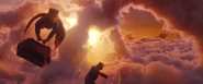 Oscar has Finley drag around his bag for the rest of the journey to the Emerald City which Finley begrudgingly does. To have an alibi, Oscar reveals to Finley the truth that he's not a wizard. Finley immediately panics but is forced to play along with the masquerade because of his debt. Accompanying Oscar on his quest to kill the Wicked Witch of the East, Finley notices smoke coming from nearby China Town, and decides to investigate it, much to Oscar's protest on trying to continue finding the witch. The duo venture there to find the town completely destroyed, with the sole survivor being a young china girl whose legs are broken. Finley watches Oscar repair the legs with glue, and the girl eventually goads Oscar to take her with them.