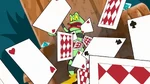 He is seen standing on a vine in the start of the theme song shaking his tail and pointing down as Brandy and Whiskers go over a waterfall, then pushing a cauldron at the bottom which they land in.