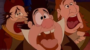 The four men are first seen together at the tavern, trying to cheer up a depressed Gaston through a song idolizing him and emphasizing his strengths (perhaps over-emphasizing), with Stanley getting his leg bitten by Gaston during a bar fight. They also observed the Bimbettes during their scene in the song, with Stanley smirking at Tom and Dick gawking at them. When Maurice arrives and pleads Gaston to help rescue his daughter, they snicker and mock at his description of her alleged captor (Beast). After Gaston "agrees" to help him, Dick and Stanley grab him and throw him out of the tavern before returning and talking with Tom about "crazy old Maurice" and how "he's always good for a laugh", giving Gaston the idea of blackmailing Belle into saying her marriage vows. They seemed to be aware of and support Gaston's resulting plan to blackmail Belle by incarcerating Maurice under false pretenses afterward, apparently eavesdropping on Gaston's whispering of the plan with their tankards.