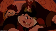 Like LeFou, they are eager to praise, as well as please, Gaston and look up to him as their leader the most out of the rest of the Villagers. In the film's climax, while the citizens only mob together out of fear that the Beast will attack their town, these four French stooges seemed to care more about taking pleasure in killing him than defending their home.