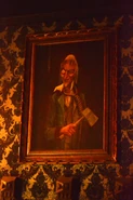 Portraits of the Ghost Host can be seen in the Walt Disney World, Disneyland and Tokyo Disneyland versions of the ride, both known as, "The Hatchet Man". In Disneyland, it appears in the Corridor of Doors and shows him brandishing an ax and holding a noose. In Walt Disney World, it shows him holding his ax while behind him, his shadow wields it as a weapon. An additional portrait appears in the load-area with it having once appeared as one of the "Sinister 11" portraits. In Tokyo Disneyland, it still is a Sinister 11 portrait seen staring at guests in a corridor scene. Some versions of the portrait showed blood on his ax, implying he used it for murder.