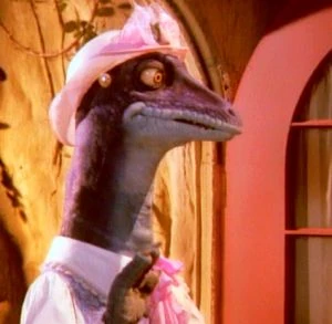 Glenda Molehill appeared in the Dinosaurs episode "Switched at Birth." She was voiced by Mimi Kennedy, her body was puppeteered by Tom Fisher and her face was operated by Bruce Lanoil. She was made from the Needlenose Unisaur.