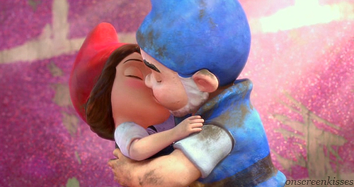 Gnomeo and Juliet getting their heads stuck.