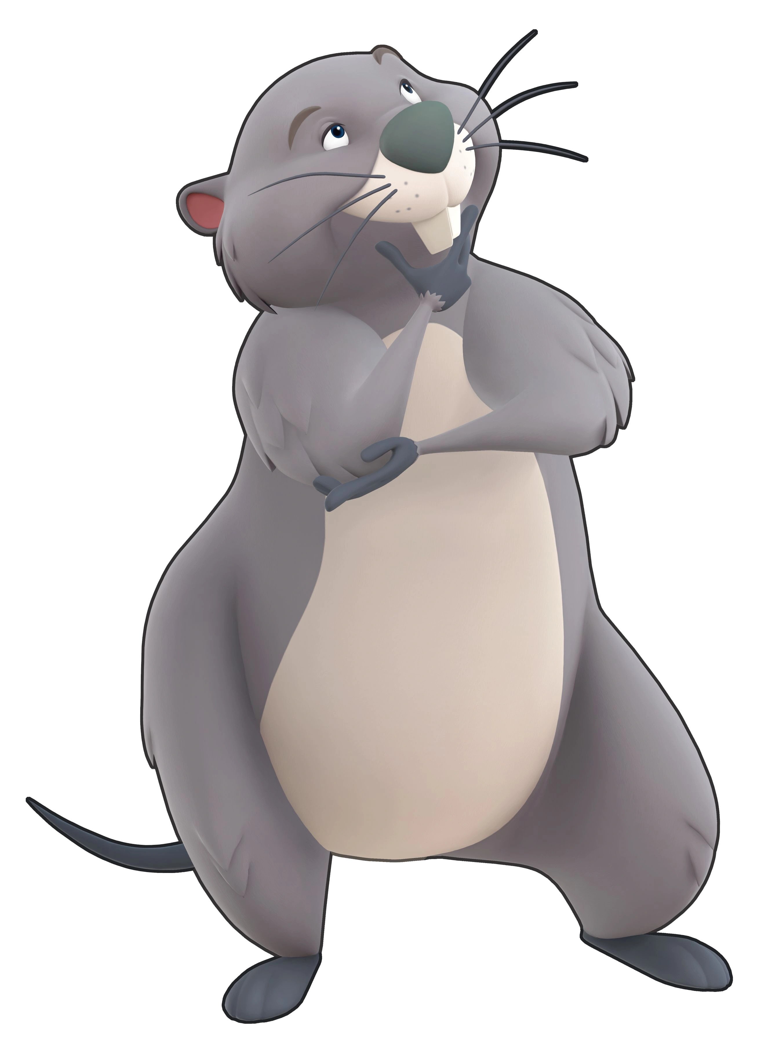 Gopher has a very plain personality; he is rarely seen outside his burrow, so not much is known about him socially. He is generally a hard-worker, especially in his mine shafts (tunnels) and spends most of his time tediously working on them. Despite his low social life, Gopher is not a silent character, while talking to the other animals he has a habit of whistling out his sibilant consonants.