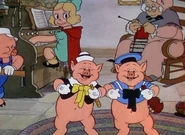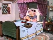 In The Big Bad Wolf, she attends the Little Red Riding Hood while she was in her bedroom. The Big Bad Wolf tries to eat her, but fortunately she finds refuge in a closet long enough for her granddaughter and the other pigs to fetch their brother Practical Pig who rescues them.