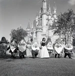 The dwarfs waving Snow White goodbye.