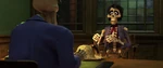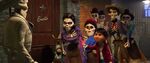 Héctor sneaking into Ernesto's party in his Frida Kahlo disguise