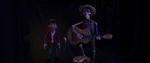 Héctor and Imelda proudly watching Miguel playing his guitar