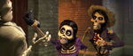 Héctor and Imelda shocked to see that Ernesto has grabbed Miguel.