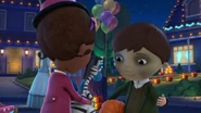 While trick-or-treating with Doc and her toys, Hallie wanders off and gets separated from the rest of the group, imparting an important lesson about staying safe on Halloween.