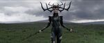 Thor, Loki, Hulk and Valkyrie, dubbed as the "Revengers" returned to Asgard from the world of Sakaar where they had been sent in order to evacuate its people and fight Hela. Thor then headed to the throne room and waited for his sister. When she arrived, they discussed Odin and his faults before engaging in battle. During the fight, Hela inflicted a grievous wound on Thor, cutting out his right eye. She then forced Thor to watch as her undead army and Fenris attacked his allies and the remaining Asgardians on the Bifrost Bridge but was surprised to see Loki to arrive with a massive ship and several Sakaaran gladiators they had befriended during their adventure. But regardless of reinforcements, Hela's army was still too strong to defeat. Hela began taunting Thor, claiming she would soon take Heimdall's sword and unleash her army on the Nine Realms. Thor, however, experienced a vision of his father encouraging him to unleash his full potential and that Asgard is not a place, but was in fact its people. Inspired and embracing his true nature, Thor unleashed a massive lighting blast, briefly stunning Hela. He then leapt down to the Bifrost to fight off Hela's Berserkers and rescue his people. Though she tried to kill the fleeing Asgardians, Skurge betrayed her and sacrificed himself to help keep Hela from killing anymore innocent lives.