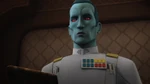 They make it to a hallway that is less guarded. Chopper distracts the two Stormtroopers on guard while Ezra and Hera sneak pass to reach the door. Hera quietly makes a break for the door only for Admiral Thrawn and Captain Slavin to appear before her. Slavin, mistaking her for a servant, orders her to leave and she almost does only to be stopped by Admiral Thrawn. Ezra in disguise brings Hera to Thrawn who asks to see the Kalikori. Then he orders Hera to be taken in for questioning. Returning to Slavin’s office, Hera is put in a chair and Slavin is the first to interrogate her for stealing the Kalikori. Thrawn on the other hand sees more to this theft that meets the eye. He recognizes the Kalikori as a Twi’lek heirloom and brings up the question of why Hera went to great lengths to steal it. Thrawn is onto her and reveals to Captain Slavin that Hera Syndulla is a Rebel pilot and Cham Syndulla’s daughter. Knowing they have been compromised, Ezra tries to act but is quickly taken out by Thrawn. Hera and an unconscious Ezra are taken to a cell while Thrawn returns to his ship with the Kalikori.