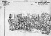 The main building is the home of Baloo and Kit. It consists of an office (the calls and orders of clients are received there), an upstairs bedroom, kitchen, warehouse (the place where the cargo and other equipment, such as plane parts are safely stored away), a bathroom, and a Watch Tower (the place for looking out and guiding planes, ships, and deliveries).