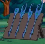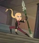 On Season Two, the staff is the union of Chinese weapons-notably the Chinese qiang-with a futuristic look. It still possesses its tooth-like points, but it looks more like a spear.