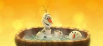 - When Olaf floats on the seawater, a yellow reindeer-shaped floatie can be seen beside him.