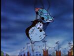 Later, now back in his home, Pete finally gets a chance to eat. Suddenly, Goofy shows up at his house telling him he's a termite exterminator. To Pete's horror, Goofy decides to start with his house.