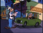 The following afternoon, Pete tells Goofy that he's too nice as an inspector and needs to get tough by giving the Chief Inspector tickets. Later, Goofy follows his boss and gives him numerous tickets. Then Pete tells Goofy that as an inspector he can do anything he wants like drive through red lights, rip "do not remove" tags off pillows and take bribes from people (which Goofy thought he has to get married), and sends Goofy off to do what he was told to do.
