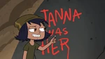 Suddenly, Janna remembers when Marco points out that she is wearing a Britta's Tacos t-shirt. She broke into the back of Britta's, knocking out Sensei Brantley in the process, and deduced that they kept the t-shirt in the employee's office. She broke in and discovered a ladder that lead down to a dug out mine of sorts where dinosaur bones and a trail of tennis balls lie. She discovered the shirt on a hanger and a wall of "graffiti" that is actually Mewman writings. As she was writing "Janna Was Here" on the wall, she fell through a well; the same one Star and Moon found while searching portals. Star deduces that this is how they can get back.