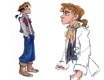Early concept art showing Jim with Afrocentric features. Pictured with early concept Morph. By Jean Gillmore.