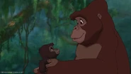 The gorilla is first seen during the song "Two Worlds" and the beginning of the film, where he crawls from his mother and Kerchak's arms. He sees a chameleon. The gorilla almost falls out of the nest, but his father stops him. He then plays with his father by climbing up his back and sliding off. He runs to his mother Kala and rubs her nose with his and then tosses him into the air.