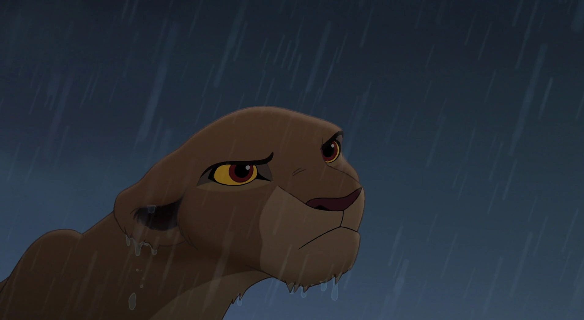 She later sees her father injured from an ambush set up by the Outsiders, as she sends Zazu for help. Kiara disbelieves that Kovu was involved when Simba accuses him of being in on it. Despite this, Kiara helped her father get back to Pride Rock with Timon and Pumbaa, who were with her. Kiara wanted to see Kovu when he came back but is stopped by Simba, who confronted him for coming back to the Pride Lands. Knowing that the ambush wasn't his fault, Kiara pleaded with her father to listen to Kovu, but he silences her and exiles him. Kiara tried to protest against her father's decision, only to be stopped by the lionesses. Once Kovu's gone, Rafiki, who was watching the event, sighs sadly, feeling that Simba has completely defied his father's goals and is too intoxicated with hate to notice Kovu for who he really is, disrupting the Circle of Life and Mufasa's intentions to bring peace between the two prides.