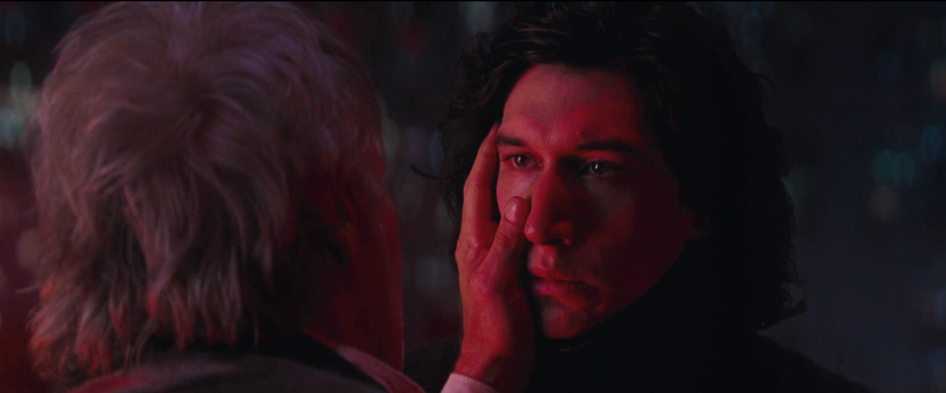 - In The Rise of Skywalker, the conversation between Ben and Han's memory atop of the ruins of the second Death Star refer to their last encounter on Starkiller Base, but with the opposite result as Ben decides to listen to his father and embrace the light instead of the darkness. According to Adam Driver, the scene is ambiguous about if the conversation is really happening in reality or is just inside Ben's head.[20] But according to one of the screenwriters, Chris Terrio, it is only happening in Ben's head as he is trying to forgive himself for what he did to his father, since he can not erase the past but can move on to make amends in the future.[1]
