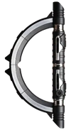 | The Fifth Brother's lightsaber is similar in design to the Grand Inquisitor's lightsaber, but is somewhat larger with indents on the outer ring. It, like all Inquisitor lightsabers, could be used for flight as well as combat. It was destroyed by Ahsoka Tano. | |