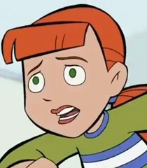 Lorraine is a pre-teen white girl, with green eyes and reddish-orange hair with a fringe, a ponytail, and a blue hair band around it. She wears an olive green shirt with a blue collar, three horizontal stripes that extended around the shirt, from front to back, on top of one another in colors that are in order of blue-white-blue, jeans, and red, and white sneakers.