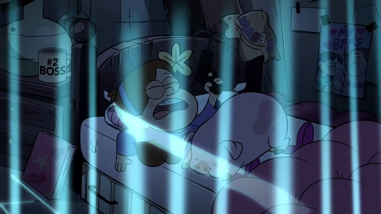 When the twins grow extremely regretful about sharing a room, they find another within the Shack. Since both want it, they decide to compete for the key to it, but unexpectedly swap bodies by Electron Carpet in the process and panic as a result. Mabel, being stuck in Dipper's body began a campaign to make Dipper look bad to Grunkle Stan. Most of this campaign consisted of having fun breaking stuff and proclaiming she was Dipper. Mabel missed out on a sleepover scheduled that very night with Candy and Grenda to Dipper with her body. As a result of age inappropriate werewolf romance novels, Grunkle Stan believes Dipper (though actually Mabel) to be "at that creepy age where you spy on girls" and decides to tell him about the birds and the bees. After being traumatized by this, Mabel loses the room to Dipper due to giving the impression that Dipper had decided to stand up to Stan. She continues to hide the key to the room from Dipper, however, and locks herself in the room. However, she is tricked into opening the door by Dipper. After this, she swaps bodies multiple times with multiple people, including Waddles, due mostly to conflict over the key to the room. After everybody is back in their own body and they talk it over, Mabel agrees to let Dipper have the room. The two eventually bond over attic mini golf after they decide they miss being in the same room, and share a room in the attic again.