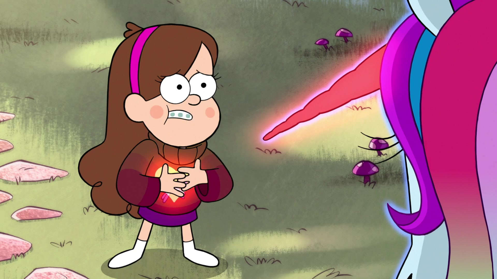 In "The Last Mabelcorn", Mabel takes on the task of obtaining unicorn hair to protect the Mystery Shack. Along with Wendy, Candy, and Grenda, she meets Celestabellebethabelle. The unicorn informs Mabel that she is not pure of heart, therefore not allowing her to take unicorn hair. A distraught Mabel decides to go around town doing good deeds. Unfortunately, Celestabellebethabelle still deems her unworthy of getting unicorn hair. While Mabel tries to think of more ways to purify her heart, the other girls take matters into their own hands and decide to cut the unicorn's hair while she is knocked out by fairy dust. Mabel attempts to stop them, taking Wendy's scissors away from her, when Celestabellebethabelle wakes up and, seeing Mabel with the scissors, assumes the worst and decrees that Mabel will never be pure of heart. Suddenly, two other unicorns emerge from the forest and inform the girls that the "pure of heart" requirement was just an excuse to keep humans away from them. Mabel angrily punches Celestabellebethabelle, and a fight ensues. Later, the girls return to Shack with a lock of hair and a treasure chest given to them by the unicorns as a bribe to leave them alone.