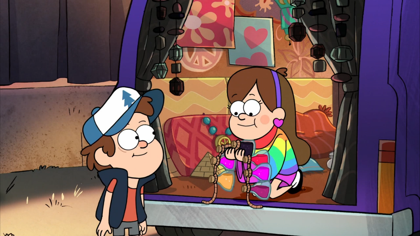 Sometime during the month of June, Mabel and her twin brother, Dipper Pines, were sent from Piedmont, California to the small town of Gravity Falls, Oregon to visit their great uncle Stan Pines. Mabel decides to make the best of the situation, believing that it is her chance to have an epic summer romance. She shows her boy-crazy obsession when she agrees to date a very mysterious creature (Norman), who is disguising himself as a teenage boy. But little does she know that he is actually a group of gnomes (led by Jeff) posing as a teenage boy. Jeff and the gnomes try to kidnap her because she refuses, but Dipper rescues Mabel and brings her back to the Shack on a golf cart. Mabel then defeats Jeff and the gnomes using a leaf blower. Stan allows them to take anything from the Mystery Shack for free, and Mabel decides on a grappling hook.