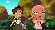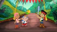 While preparing for the Belch Mountain Parkour Race, Jake uncovers the Mega-Mecha Sword within the brush of the Never Land Jungle. Marveling at his newly acquired mechanize blade's various features, Jake begins to neglect his old sword that Peter Pan bestowed upon him.Jake wasn't the only one taken by the Mega-Mecha Sword wonders Captain Hook also has his eye on the sword various features that rival his collection of hook and was determined to claim the sword as his own. Once Jake finally reach the finish line atop of Belch Mountain Hook manages to take the Mega-Mecha Sword for himself leaving Jake to plummet into the volcano. Jake ask Hook to help him out of the volcano, but the volcano starts rumbling, forcing Hook and his crew to flee to safety, leaving Jake to his fate. Fortunately, Cubby, Izzy, and Skully arrive to help Jake, but find themselves also in the volcano. Using Cubby's map, they learn of a secret path to escape the volcano. Equipped with his old sword, Jake finds the confidence and courage to lead his crew out of Belch Mountain and later rescuing Hook and his crew from the danger of the lava flow.