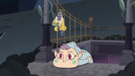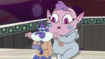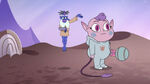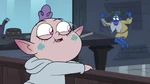 In "Cornonation", Meteora is present for her mother's queen coronation ceremony. When Globgor is revealed to have been released from his prison, suspicion falls on Eclipsa, and Hekapoo imprisons Meteora in a cage. When Globgor appears before the Mewmans and gets into a confrontation with the Magic High Commission, Meteora frees herself from her cage by dipping down, and seeing her helps Globgor calm down.