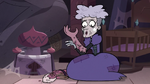 In "Meteora's Lesson", Glossaryck takes Meteora back in time in order to help her learn to dip down. When they encounter a younger Toffee (who had broken Glossaryck's arm around that time), Meteora grows angry enough to succeed in dipping down and attacks Toffee. Glossaryck, satisfied with her success, returns them to their proper time.