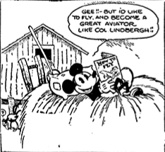 On January 30, 1930, the first of Mickey's printed adventures was distributed—as written by Walt Disney, and illustrated by Ub Iwerks. Dubbed "He's Going to Learn to Fly Like Lindy", the strip sees a barn-dwelling Mickey dreaming about becoming an aviator like Charles Lindbergh. By the summer of 1930, the comic had appeared in up to 40 newspapers across the world. By May of that year, Mickey's comic stories were taken over by Disney artist Floyd Gottfredson, who would become renowned for four decades worth of work on Mickey Mouse comic stories. Like Mickey's entry into merchandising, the Mickey Mouse strip is credited to having attributed to Mickey's "golden age" and worldwide success.[70] That same year, The Chain Gang introduced a non-anthropomorphic bloodhound character who would evolve into Pluto, Mickey's pet dog and a frequent supporting character in the films.