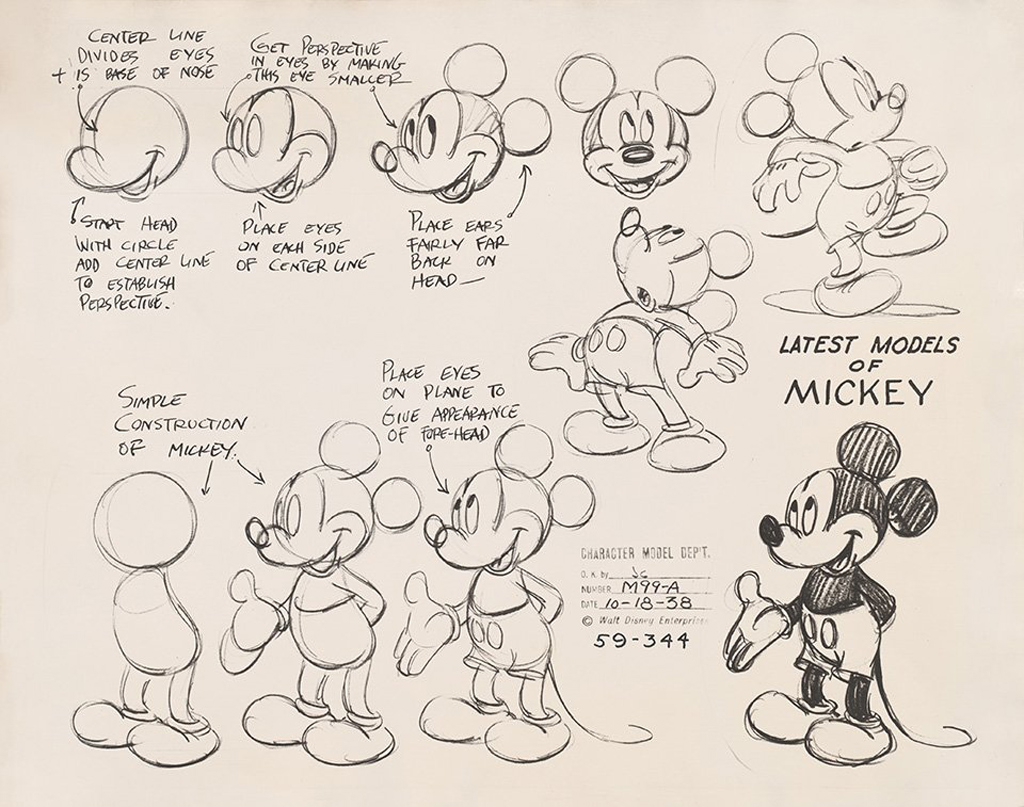 A model sheet of Mickey Mouse's redesign by animator Fred Moore. (c. 1938).