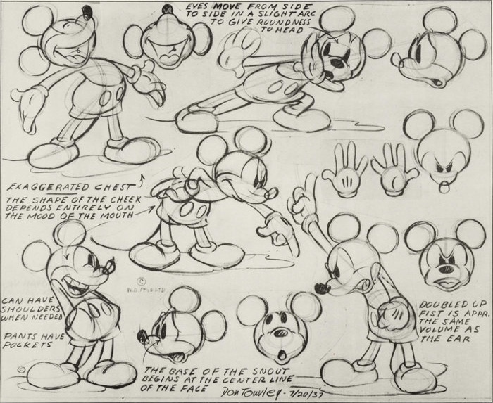 A model sheet of Mickey Mouse by animator Don Towsley. (c. 1937).