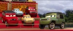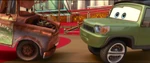 Axlerod surprised to see McQueen and Mater as the latter reveals he knows who's sabotaging the WGP.