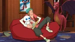 In "Steamer's Revenge", Mini-Max informally meets Boss Awesome who—according to his research—is considered to be the greatest superhero of all time. Mini-Max unknowingly causes conflict for Fred here, by acknowledging how difficult it would be for Boss Awesome's offspring to live up to the former's legacy.
