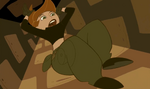That Saturday night, Kim and Ron go to ask Monty for help, thus having the Holo-Kim take her place at her cousins house. When shown inside, Monty reveals to them that he was in fact the ninja that stole the artifact, and that he had the other three as well. He also revealed to be crazy in the sense that he spent his family fortune on getting his hands and feet mutated to make him part man part monkey. He tells the duo that since they know his secret, he'll have to kill them. When he attacks Kim, he shoots right past her, revealing that Kim actually did go to her cousins house and Ron was left with the Holo-Kim. Ron tries to escape from Monty as Wade calls Kim to let her know what is going on. Shocked and helpless to assist Ron, Kim allows Larry to speak to her friend. Larry encourages Ron to defeat Monty like he would have in the Fortress video game, by becoming like him. Ron runs to the four artifacts and "becomes what he fears most." He is imbued with the same power, and so is Rufus, who was caught in the energy too.