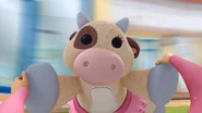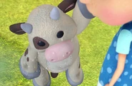 She appeared in the episode "Blame It On The Rain", when Alma accidentally left her outside in the rain and is then devastated. Doc takes Moo-Moo to the clinic to get her dried off. When Hallie puts a wristband on her, she cries because she is sad that Alma has left her out in the rain. Doc, Lambie and Stuffy twist and squeeze Moo-Moo, and then roll and press to cure her 'squishyitis'. Then they dry her in the sun and give her one last check-up and she is ready to go home, but she doesn't want to, because she thinks Alma left her out in the rain on purpose. Doc and her friends tell her that Alma still loves her even if she makes a mistake and about their previous mistakes. Aft singing a song about making mistakes, Doc and Moo-Moo hear Alma crying in her garden. Realizing that everyone, including best friends, make mistakes sometimes, Moo-Moo is ready to go back to Alma and receives one more cuddle from Lambie, Stuffy, and Hallie. Doc takes Moo-Moo to Alma's house and gives her back to Alma. When it starts to rain again, Alma takes Moo-Moo, her fairy doll and her frog inside.