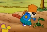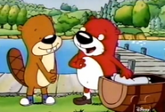 Munchy Beaver is a character from PB&J Otter. He is known in particular for two things -- his semi-obsession with wood and his nervous behavior, often lacking self-confidence. This shy, bashful nature sometimes makes him a target for teasing from Flick, though Flick rarely means to actually be cruel to Munchy. Munchy lives at home with his mother, Betty Lou Beaver. The name of Munchy's father is unknown. He possibly works somewhere far away from Lake Hoohaw, as Munchy indicated in "Collector's Edition" that his father sent him a shark tooth. In "Munchy's Sinking Feeling", Munchy stated after his boat was wrecked that his dad chewed it for him and he's had it since he was born. Sometimes, his friends call him "Munch". Munchy idolizes Bucky Spacebeaver, a fictional hero that he sometimes reads about in comics.