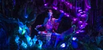 Boarding a hand-woven reed boat provided by Alpha Centauri Expeditions, guests take a journey down the sacred Kaspavan River into the colorful bioluminiscent rainforest. After a Na'vi scout greets us on the shore, the boat passes by viperwolves and hexapedes with woodsprites, panopyra and fan lizards floating up into the canopies. After passing under leaves that creatures above are hopping between, the boats come across a Na'vi tribe and their direhorses walking to a great ceremonial site. Passing by a waterfall, we finally see the Shaman of Songs leading the Na'vi into a musical celebration of their bond with Ewya. After this encounter, the boats enter a cave with various offerings and return to the loading docks.