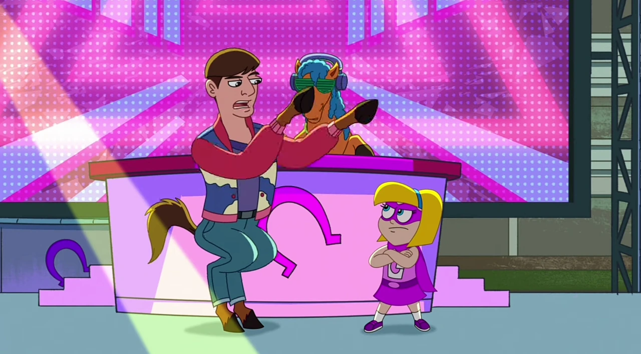 I'm a horse-themed villain, and I'm spittin' some rhymes You're just a little girl and you're up way past your bedtime I'm not playing with you, there's no ropin' or rangling I've got your partner right here, precariously dangling.